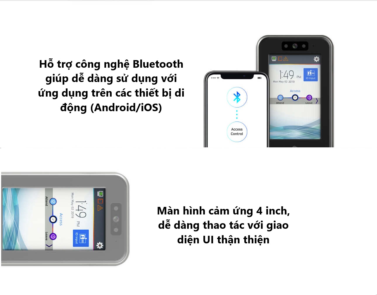 Màn hình màu cảm ứng 4inch + thiết kế mỏng gọn của thiết bị thích hợp lắp ở mọi vị trí cần tính thẩm mỹ cao.