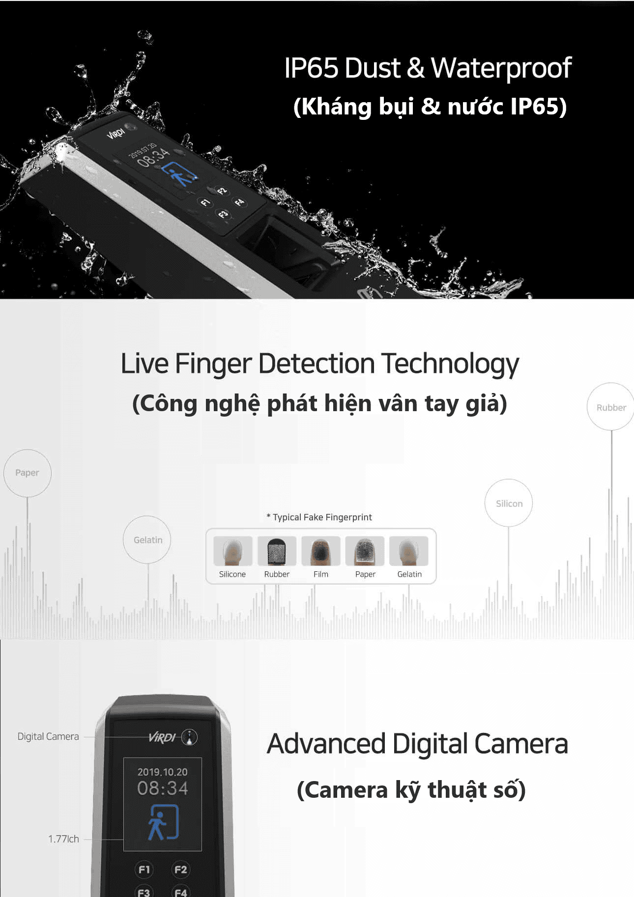 * Công nghệ Live Fingerprint Detection Embedded (phát hiện vân tay giả)